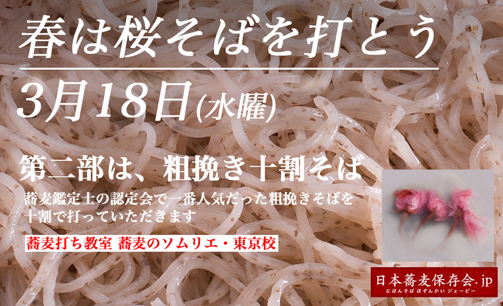 ⬇︎ 3月は、季節の風物詩・桜そばと、日本一おいしいと評価された在来種を、粗挽き、十割で打っていただきます。写真をクリックして、詳細をご覧ください。